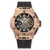 Мъжки автоматичен часовник. 18 каратов розов карпус. Каишка от тележка кожа. 18 каратова позлатена рамка. Черен циферблат с златисти стрелки. Автоматично движение. Скелетон. Устойчив на надраскване. Сапфирен кристал. Размер на корпуса 45 мм. Водоустойчивост 100 метра. 2 Години Гаранция. №402.OX.0138.WR Лимитирана серия.