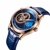 Мъжки автоматичен часовник Reef Tiger. Златен корпус от благородна стомана. Фиксирана златна рамка. Минимум маркери околовъншния ръб. Синя кожена каишка. Аналогов. Син Циферблат. Римски цифри означават 4 позиции. Автоматично движение. Стъкло съпфир кристал. Размер на корпуса 37 мм. Остойчиво на надраскване. Водоустойчивост 100 метра. 2 Години Гаранция. №RT7900-YLL