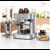 Насладете се на еспресо, кафе, капучино, лате макиато и ко - лесно приготвени със смлени кафеени зърна или подложки кафе/еспресо. Удоволствие като в Bella Italia - с този превъзходен уред в атрактивен корпус от неръждаема стомана международните кафе специалитети могат да бъдат прясно приготвени у дома или в офиса. Оборудван с мощна оригинална италианска висококачествена помпа и здрав термоблок, изработен от лят под налягане алуминий, този уред произвежда ароматно еспресо с фина, компактна пяна. Могат да се използват както прясно смлени зърна, така и - много практично - готови подложки за еспресо/кафе. С помощта на подвижната дюза от неръждаема стомана може удобно да се приготви гореща млечна пяна за капучино или лате макиато, както и гореща вода за чай и др. Капацитетът на чашата се избира ръчно за еспресо според вашия индивидуален вкус. Солидният портафилтър с двоен изход лежи добре в ръката, в зависимост от филтърната вложка могат да се приготвят 1 или 2 чаши. 1. 5-литровият резервоар за вода и съдът за отцеждане са подвижни и по този начин лесни за боравене и почистване. Сменяем воден филтър в резервоара допълнително осигурява постоянно добро качество на водата. Перфектният уред за "малкото кафене" у дома!