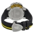 Silver-tone stainless steel case with a black and yellow rubber strap.Black dial with black hands and index-Arabic numerals hour markers.Luminescent hands and markers. Date display at the 3 o'clock position. Chronograph - sub-dials displaying.Ronda Caliber RL 3520.D quartz movement.